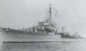 Z43 was a Type 1936B destroyer built for the Kriegsmarine (German Navy) during World War II. Completed in mid-1944, the ship spent the war in the Baltic Sea, escorting German ships, laying minefields, and bombarding Soviet forces. She participated in a minelaying operation in December 1944, where her sister ships Z35 and Z36 were sunk when they accidentally entered a German minefield. She was badly damaged by a mine on 10 April 1945, and scuttled on 3 May of that same year.