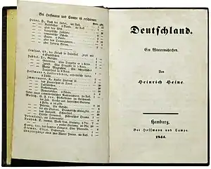 1. 1 2 Amey, L. J. (1997-01-01). Censorship: Gabler, Mel, and Norma Gabler-President's Commission on Obscenity and Pornography. Salem Press. p. 350. ISBN 9780893564469. Ironically, Heine became famous because of censorship, particularly after he wrote a political cycle of poems entitled Germany. A Winter's Tale in 1 844 that was immediately banned throughout the confederation