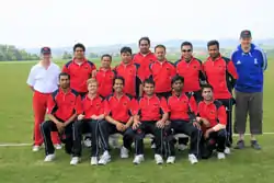 The German national cricket team is the men's team that represents the country of Germany in international cricket. The German Cricket Federation, which organises the team, has been an associate member of the International Cricket Council (ICC) since 1999, having previously been an affiliate member from 1991.[5][6] The national team made its international debut against Denmark in 1989, playing as West Germany.[7] It has since played regularly in European Cricket Championship tournaments, as well as twice in the lower divisions of the World Cricket League.[8] In 2001, Germany also competed in the ICC Trophy (now the World Cup Qualifier) for the first and only time.[9] In 2022, they played their first T20 World Cup Global Qualifier.[10]