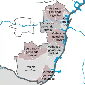 Germersheim (German: [ˈɡɛɐ̯mɐsˌhaɪm] ⓘ) is a district in the south-east of Rhineland-Palatinate, Germany. Neighboring districts are (from west clockwise) Südliche Weinstraße, Rhein-Pfalz-Kreis, the district Karlsruhe as well as the district-free city of Karlsruhe, and the French département Bas-Rhin.