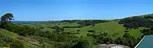The Kiama and Gerringong area is marketed as "Where the Mountains Meet the Sea" by Kiama Council.[38] A spur of Saddleback Mountain reaches down to Mt Pleasant to the north of Gerringong township, ending the Illawarra escarpment, which starts north of Wollongong. The area is famous for its coastline, which includes sea cliffs, beaches surrounded by rolling hills and countryside that stays green year-round.