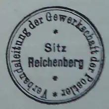 The union had its headquarter in Reichenberg.[2] As of 30 June 1924 the union claimed a membership of 4,420 (3,592 male, 828 female).[2] Joseph Tichak served as the chairman of the union.[3][4] The union issued a monthly publication named Gewerkschaft der Postler, edited by Paul Gottschlich.[2][5][6]