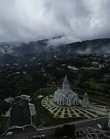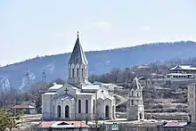 Holy Savior Cathedral (Armenian: Սուրբ Ամենափրկիչ մայր տաճար, Surb Amenap′rkich mayr tachar), commonly referred to as Ghazanchetsots (Armenian: Ղազանչեցոց),[lower-alpha 1] is an Armenian Apostolic cathedral in Shusha in Azerbaijan. It is the cathedra of the Diocese of Artsakh of the Armenian Apostolic Church. Standing 35 metres (115 ft) high, Ghazanchetsots is one of the largest Armenian churches in the world. A landmark of Shusha and the Karabakh region,[4] and of Armenian cultural and religious identity,[5] it is listed as cultural and historical monument of the breakaway Republic of Artsakh.