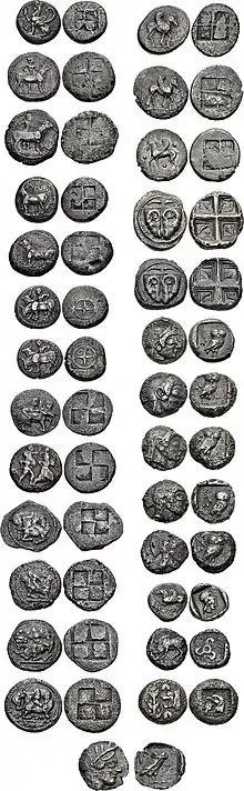 There is a large proportion of Macedonian, Thracian and Chalcidian coins in the hoard, the presence of which is considered as a consequence of the invasion of the Balkans by the Achaemenid Empire between 514-479 BCE.[1] Alternatively, they may have diffused mainly after the Greco-Persian wars.[1]