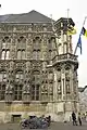 The aldermen's house of De Keure (corner Botermarkt-Hoogpoort) was built in late Gothic flamboyant style between 1519 and 1539 to a design by Rombout II Keldermans and Dominicus de Waeghemaekere.[1] The facade niches were intended to contain the statues of the Counts of Flanders.[2]