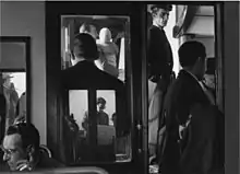 was taken in 1960, on a vaporetto with mirrored doors so that the passengers are trapped in a mosaic of reflections. Simultaneously mundane – the travellers are ordinary commuters – and exotic, it captures the paradox of a city trapped in an excess of representation.[9]