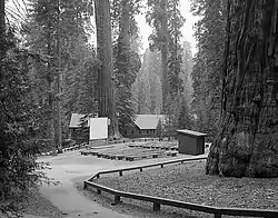 The first development in the Giant Forest took place in 1899, when a tent camp was set up in the grove. A road reached the site in 1903, and more permanent development followed. The first lodge was built in 1915. In 1921 the Sequoia and General Grant National Parks Company erected the primary lodging area next to Round Meadow, the first area to be called "Giant Forest Lodge". The same year, Camp Kaweah was established to provide additional capacity. By 1926, a study commissioned by the Park Service indicated that the development was adversely affecting the trees. The following year the park superintendent, Colonel John White, first proposed the removal of the development. However, the concessioner was able to intervene with the director of the Park Service, and White was overruled. He was, however, able to impose limits on guest accommodations, the first such limits in the National Park system.[2][3] In 1962 and 1965 two reports indicated that the hydrology of the area had been affected by development, and that the fire suppression made necessary by the proximity of buildings had created an unfavorable environment for new sequoia growth. Additionally, the influential Leopold Report on national park development, written by nature conservationist A. Starker Leopold, specifically criticized the Giant Forest development.[4] By 1971 the park's master plan called for the reduction of human impact in the Giant Forest. By 1980 a consensus had developed for the relocation of the recreational facilities.[5]