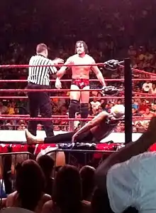 Gilbert's international debut took place on December 9, 2011, at Fighting Spirit Wrestling's debut event Immortals Holidays, competing in a four-way main event against Shane Douglas, Homicide and Sami Callihan.[41] Gilbert won the contest, becoming the first FSW World Heavyweight Champion. His first title defense was programmed for February 25, 2012, with his opponent being Chavo Guerrero.[42] Gilbert retained following a piledriver and participated in a post-match beatdown on Guerrero that included two other wrestlers.[43] On May 26, 2012, he reappeared in FSW by competing in a 3-on-3 contest. On August 22, 2012, Gilbert headlined FSW's first event in Atlantic City, titled Boardwalk Empire. The main event was the same of Aniversario 2012, featuring a rematch between him and Figueroa for the FSW World Heavyweight Championship. Gilbert emerged from the card still holding the title. Gilbert lost the FSW World Title after he was stripped of the title by FSW for no-showing a Fighting Spirit Wrestling event which made the title vacant which was later won by the "Funky Monkey" Angel Ortiz.