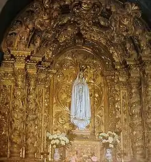 Gilded woodcarving in Portugal (Portuguese: talha dourada) is, along with tile, one of the country's most original and rich artistic expressions. It is usually used in the interior decoration of churches and cathedrals and of noble halls in palaces and large public buildings. An impressive collection of altarpieces are found in Portuguese churches. Originating in the Gothic era, Portuguese gilded woodcarving assumed a nationalist character during the 17th century and reached its height in the reign of King D. João V. In the 19th century it lost its originality and began to disappear with the end of the revival era.