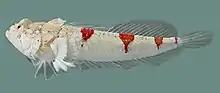 The warteye stargazer (Gillellus uranidea) is a species of sand stargazer native to the Atlantic coast of southwestern Florida, United States, and in the Caribbean Sea from the Bahamas and the coast of Central America to Panama where it can be found in sandy areas on reefs or among rocks. It is an ambush predator, burying itself nearly completely in the sand and waiting for prey items to come along. It can reach a maximum length of 5 cm (2.0 in) TL.[2]
