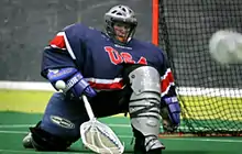 Ginny Capicchioni is a lacrosse goaltender. She played women's lacrosse at Sacred Heart University. After college she played men's box lacrosse in the National Lacrosse League, senior Canadian Lacrosse Association, and for Team USA at the 2011 World Indoor Lacrosse Championship. Capicchioni grew up in Oradell, New Jersey and attended River Dell Regional High School, where she played basketball, field hockey and softball.[1]
