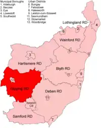 Gipping Rural District was a rural district in the county of East Suffolk, England. It was created in 1934 by the merger of the disbanded Bosmere and Claydon Rural District and the disbanded East Stow Rural District, under a County Review Order.[1] It was named after the River Gipping and administered from Needham Market.