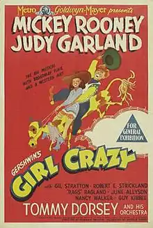 Girl Crazy is a 1943 American musical film starring Judy Garland and Mickey Rooney. Produced by the Freed Unit of Metro-Goldwyn-Mayer, it is based on the stage musical Girl Crazy  which was written by Guy Bolton and Jack McGowan, with music and lyrics by George and Ira Gershwin. It was the last of Garland and Rooney's nine movies as co-stars, the pair appearing only once more together on film, as guest stars in 1948's Words and Music.