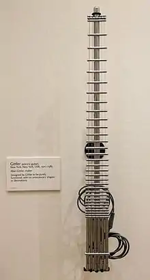 A Gittler Guitar is an experimental designed guitar created by Allan Gittler (1928–2002).[1] Gittler felt that sentimental design references to acoustic guitars are unnecessary in an electronically amplified guitar, and designed his instrument with the objective of reducing the electric guitar to the most minimal functional form possible.