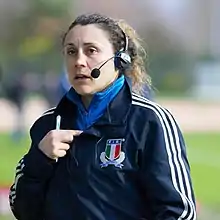 Giuliana Campanella (born 4 November 1976 in Messina) is an italian sports manager, rugby union coach and former player. She won 59 international caps for Italy and competed at two World Cups; since 2014, she has been the team manager of the national team.[1][2] In 2002, she was awarded the Bronze Medal for Athletic Valour.[3]