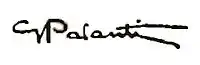 In 1921 Palanti joined the Chiaro di Luna artistic and literary movement, working against the 'antics' of the avant-gardes.[1] In 1923 he was appointed holder of the chair of decoration of the High School of the Brera Academy. In 1924 In the post war period, he began to produce prolific work for private clients amongst the Milanese bourgeoisie looking for portraiture, and occupied a role few contemporaries were offering.[11] His clients included, amongst others, Mata Hari[11] and Grazia Deledda. In 1924 he was commissioned by the Apostolic Nunciature to Argentina to paint a portrait of Pius XI.[6] In 1925 he painted Vittorio Emanuele III and Queen Elena.[1] In 1928 he painted a portrait of Benito Mussolini, which became one of the official images of il Duce, reproduced in newspapers and in the Encyclopedia Treccani. It remains to date one of the official portraits. In 1933 he became a member of the Higher Council of National Education (Ministero dell'Educazione Nazionale), who in 1934 appointed him vice president of the Brera Academy. In the 1940s he participated with his son, the architect Giancarlo Palanti, in the furnishing of the Villa Necchi at the Portalupa, painting numerous paintings including a portrait of Lina Ferrari Necchi measuring 294 cm x 400 cm.[12] His career continued successfully until the early 1940s when WW2 impacted his ability to work. He died in 1946 in Milan at the age of 64, having last exhibited at La Società Patriottica. He is buried in the Monumental Cemetery of Milan (Cimitero Monumentale di Milano).