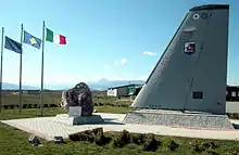 Memorial to the first flight to land at Gjakova Airport on 23 September 1999, an Italian Airforce G 222