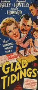 Glad Tidings is a 1953 British comedy film directed by Wolf Rilla and starring Barbara Kelly, Raymond Huntley and Ronald Howard.[1] It was based on the play of the same title by R. F. Delderfield and made at the Nettlefold Studios in Walton-on-Thames.[2] The film's art direction was by John Stoll.[1] The backers Eros Films were pleased enough with the film's success to adapt another Delderfield play as Where There's a Will in 1955.[3]