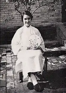 Upon arriving in Yangcheng, China, Aylward worked with an older missionary, Jeannie Lawson, to help manage The Inn of the Eight Happinesses[6] (八福客栈 bāfú kèzhàn in Chinese), a name based on the eight virtues of Love, Virtue, Gentleness, Tolerance, Loyalty, Truth, Beauty and Devotion.[7] There, she and Mrs. Lawson not only provided hospitality for travelers but would also share stories about Jesus, in hopes of spreading nascent Christianity. For a time she served as an assistant to the Government of the Republic of China as a "foot inspector" by touring the countryside to enforce the new law against footbinding of young Chinese girls. She met with much success in a field that had produced much resistance and even violence at times against the inspectors.[4]