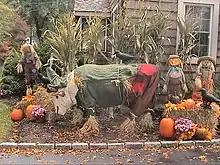 In October 2003, the cow sculpture was converted into "Gladys as a Scarecrow", inspired by The Wizard of Oz. This marked the first complete departure from the sculpture as a painted work. The use of straw, natural fiber, burlap, and organic materials was incorporated to achieve a fall motif.