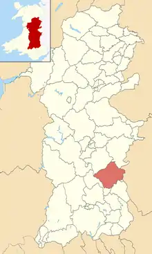 Glasbury is the name of an electoral wards in central Powys, Wales. It covers the community of Glasbury (which contains part of the village of the same name) as well as the neighbouring communities of Clyro and Painscastle.[1] The ward elects a county councillor to Powys County Council.
