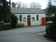 The valley contains the small church of St Fingan.[2]