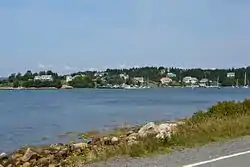 Within the community is a peninsula called Indian Point that stretches into the bay. At its tip are two small islands: Big Indian Island and Little Indian Island. All three are so named because of arrowheads that have been found there in the past, suggesting that this was once a Mi'kmaq summer camping ground.[1] Big Indian IsIand is also popularly referred to as Micou's Island. It is a tidal island accessible by a sandbar at low tide which has become a popular beach during summer months.