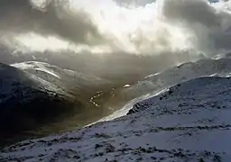 A road runs up the glen as far as Kenknock Farm (at grid reference NN465364), but there is no vehicular access beyond this point. A track leads further up the glen past cottages at Badour, then Batavaime farm (at grid reference NN421347), the last occupied building in Glen Lochay. The ruins of cottages can be seen higher up the glen, but these were vacated long ago.