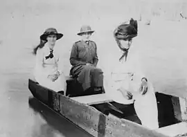 Three ladies sitting in a boat on the lake at Glen Niven during World War I