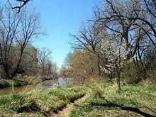 An interesting site on the edge of Glendale is Four Mile Historic Park. This 12-acre (49,000 m2) rural site is home to metropolitan Denver's oldest house, the Four Mile House, which is listed on the National Register of Historic Places. Built in 1859 along Cherry Creek, the Four Mile House once served as a stage stop, wayside inn, and tavern for travelers on their way to Denver City via the Cherokee Trail. Today Four Mile Historic Park houses a museum, summer camp, and events center. The park is situated just outside Glendale's city limits, in the Washington Virginia Vale neighborhood of Denver.[19]