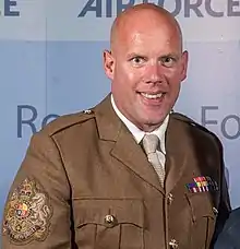Major Glenn John Haughton, OBE (born May 1972) is a retired British Army officer. In November 2018, he served as the Senior Enlisted Advisor to the Chiefs of Staff Committee until December 2021. He was previously the Army Sergeant Major, the most senior warrant officer and member of the other ranks in the British Army, from 2015 to 2018.[1][2] He has also served as Regimental Sergeant Major of the 1st Battalion, Grenadier Guards and Academy Sergeant Major at the Royal Military Academy Sandhurst.[1][3]