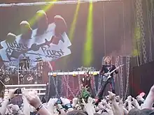 Tipton's daughter, Karina Greenin, took part in an annual marathon in Barcelona to help raise funds for her father's foundation, which exceeded her £3,500 goal.[27] Richie Faulkner recalled that Tipton was diagnosed during the Redeemer of Souls Tour, "maybe, actually, a bit before. So, after the 'Epitaph' tour, but before the 'Redeemer Of Souls' tour he got diagnosed, and they told him that he had it for quite a few years before that, but he didn't know. He kept it quiet, which is his business… He chose to go and check it out and they told him that it was the onset Parkinson's, and he told us. But he was able to do the 'Redeemer Of Souls' tour." He then said that the set had to be slightly changed in order to accommodate him. The band did not perform a few songs on the first part of the tour, but upon their appearance in Australia, they began to perform them due to Tipton's resurgence in his health and managed to successfully perform the entire tour, but stepped down during rehearsals for the Firepower World Tour due to the disease's progression which caused emotional heartbreak for the band.[28] Tipton expressed his heartfelt gratitude to the fans for their support for him, "particularly over the past year which has been a tough one for me.....thank you all so much! No surrender!!"[29]