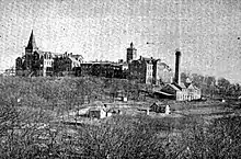 In 1882 Archibald was replaced as medical superintendent by Dr. Francis Marion Powell. At the time of his appointment the IIFMC consisted of the buildings of the Orphan's Home, a 160-acre (0.65 km2) farm, and an additional 20 acres (81,000 m2). In 1884 the Old Administration Building was constructed based on several principles of the "building as cure" Kirkbride Plan. Also, age restrictions were abolished with the creation of a new Custodial Division and by 1886 the institution was home to 259 people. Additional buildings were constructed as the grounds expanded and the resident population grew to 815 people by 1899.