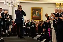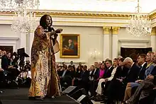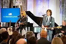 The event featured live performances from Jamie Barton, Gayle, Dave Grohl, Mickey Guyton, Herbie Hancock, Christopher Jackson, Ladama, Aimee Mann, Rakim, Armani White, among others.[22] Blinken himself also performed "Hoochie Coochie Man" by Muddy Waters, the video of which went viral.[23][3][24] Quincy Jones, a former Jazz Ambassador, received the inaugural Peace Through Music Award.[4]