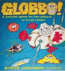 Globbo! is a board game published by Steve Jackson Games (SJG) in 1984 in which a murderous blob tries to eliminate equally murderous blob children.