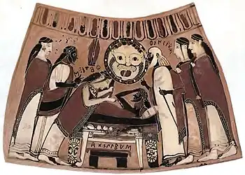The Greek philosopher Plato, in his dialog Symposium devoted to discussing love, digresses into the subject of fame and glory. This comes in the section that concerns the dialog between Socrates and Diotima. She is explaining that men search for some kind of immortality, for instance by means of physical and intellectual procreation. She then asserts that the love for fame and glory is very strong, and in fact to obtain them, men are ready to engage in great efforts, and also run risks and sacrifices, even of their lives (self-sacrifice), and will sacrifice still more for this than for their children. She then references Alcestis (who died to save Admetus), Achilles (to avenge Patroclus), and Codrus, as examples of heroes in search of fame and immortal renown.[2]
