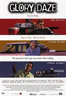 Glory Daze is a 1995 American independent comedy film written and directed by Rich Wilkes and starring Ben Affleck, Sam Rockwell, Megan Ward, and French Stewart. It also features John Rhys-Davies, Alyssa Milano, and Spalding Gray in supporting roles. The plot concerns five college housemates in Santa Cruz, California who are facing graduation and make an attempt to prolong their carefree lifestyle before going their separate ways. Matthew McConaughey, Meredith Salenger, Matt Damon, Brendan Fraser, and Leah Remini all appear in minor roles. Music for the film was composed and selected by members of the punk rock band The Vandals, and the soundtrack features several punk rock bands of the era.