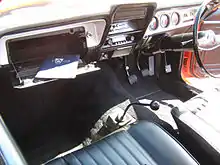 Open glove compartment of a right-hand drive car assembled in Australia by Australian Motor Industries (AMI)