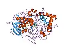 2. Li J, Vrielink A, Brick P, Blow DM (November 1993). "Crystal structure of cholesterol oxidase complexed with a steroid substrate: implications for flavin adenine dinucleotide dependent alcohol oxidases". Biochemistry. 32 (43): 11507–15. doi:10.1021/bi00094a006. PMID 8218217.