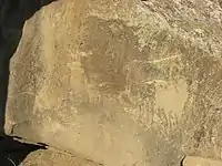 The cultural landscape was firstly discovered by local miner in 1939–40.[12][2] The sticky drawings of the deer, goat and cattle dated between 12th and 8th centuries BC reflect the Neolithic period in Gobustan.[13] Gobustan petroglyphs studied by Isak Jafarzadeh who analyzed approximately 750 rocks with more than 3,500 petroglyphs in 1947 and onwards were divided into 6 periods from ancient times to the Middle Ages: