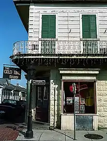 The Gold Mine Saloon is a drinking establishment in the French Quarter of New Orleans, Louisiana.[1] The saloon is known for creating its signature Flaming Dr. Pepper cocktail in the 1980s[2] and vintage video games (e.g., the 1982 Popeye).[3][4][5] The patronage has been described as an avant-garde and artistic crowd.[1][6] The establishment hosts the 17 Poets Literary and Performance Series.[7][8] The operator, Dave Brinks (son of the bar's owner, Barbara Bear),[9] is the author of the post-Hurricane Katrina poem cycle The Caveat Onus.[1][8][10]