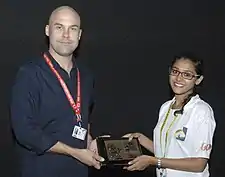 Director Brian Perkins, being felicitated at IFFI (2015)