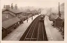 Pontrilas station in 1906, looking north. The Golden Valley line bay platform is on the left