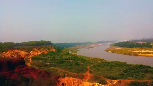As one enters the area, there is red rocky land that leads to a sharp drop to the Shilabati valley or "canyon floor". One can view the splendour of the laterite cliffs floating above. “Wind and water have collaborated over millions of years to carve and chisel a craggy ravine-filled landscape of forbidding splendour.” Locals call it Gongoni Danga or Gongoni Khola. The more imaginative city folk have christened it as the Grand Canyon of West Bengal.[3]