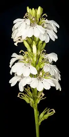 • Goodenia watsonii subsp. glandulosa Carolin[7] has the peduncles, pedicels ovary and parts of the petals covered with soft glandular hairs, and a bluish corolla with a yellow centre, or whitish;[6][8][9]