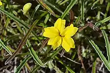 Goodenia willisiana, commonly known as sandhill goodenia,[2] is a species of flowering plant in the family Goodeniaceae and is endemic to drier areas of south-eastern Australia. It is an erect or ascending perennial herb with crowded elliptic to lance-shaped leaves at the base of the plant, and yellow flowers arranged singly in leaf axils.