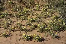 This goodenia grows in western New South Wales, north-western Victoria and south-eastern South Australia, often on sandhills and in mallee communities.[2][3][4][5]