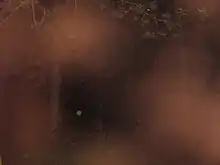 Photo taken in Goodleburg Cemetery in May 2007 showing colored orbs anthropomorphizing a demonic figure