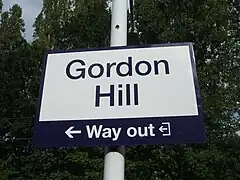 Gordon Hill is both a road and an area located in the London Borough of Enfield, Greater London, United Kingdom. It is served by Gordon Hill railway station. Adjoining areas include Clay Hill, Enfield Chase, Enfield Town, Crews Hill, Forty Hill and World's End.