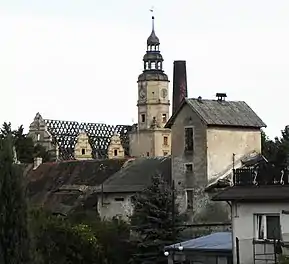 After 57 years of neglect and such continuous pillage and plunder as the property was subjected to since the beginning of the Second World War, the ownership of the Castle was acquired in 1996 by an Austrian national who — despite promises of restoration of the Castle to its former glory — did nothing during the ensuing 14 years to rehabilitate the property or even just to stem the ongoing decay.[16] In this way the period of decline was extended from 57 years to 71 years. Then, in October 2010, the Castle was purchased by yet another investor, said to belong to old Polish nobility, a development which again raised the hopes of the local population (including the mayor of the neighbouring Bystrzyca Kłodzka, the administrative seat of the gmina) that the Castle might be rescued from irreversible collapse.[16] Instead of fulfilment of these hopes, however, there are signs of plans to turn the property into a commercial enterprise servicing the hospitality industry as a wedding hall.[16][17] The latest reports (including those of the conservation group Zabytki Śląska) suggest the continuing neglect of the property while the new owner searches for a "business partner".[18][19][20] Gorzanów Castle is included in the 2009 book Silesia: The Land of Dying Country Houses published by the conservation group Save Europe's Heritage in London (see Bibliography).